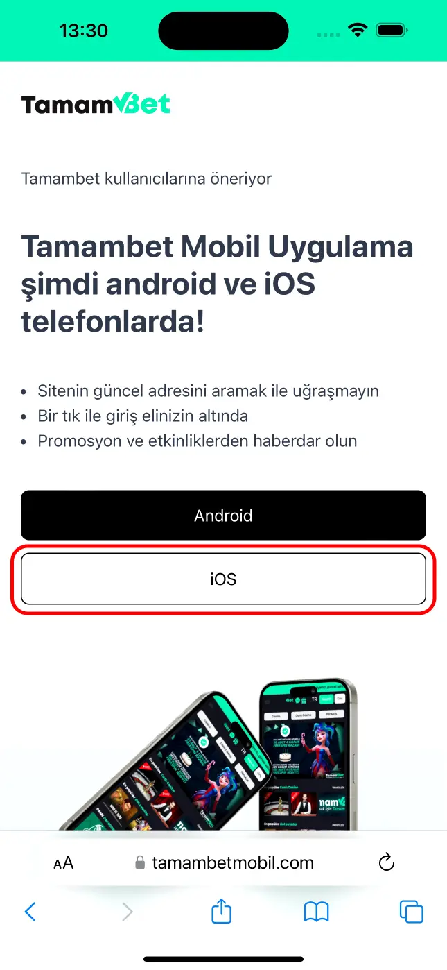 tamambetmobil.com adresinden iOS butonuna basın.