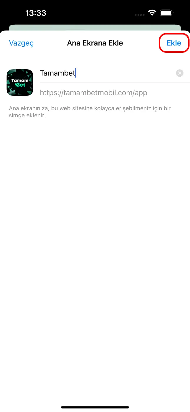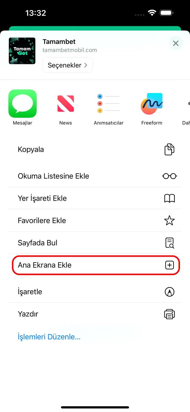 Açılan sayfada “Ana Ekrana Ekle” butonuna basın.